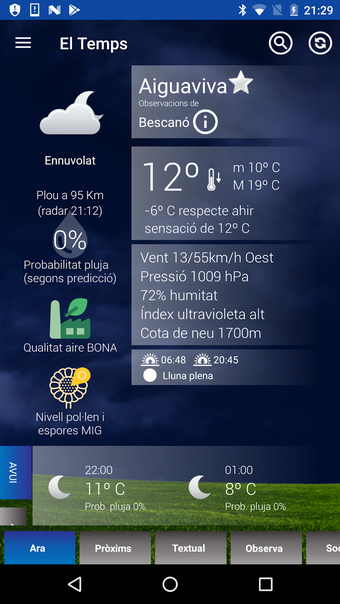 El Tempsは、カタルーニャとカタルーニャ地方の気象アプリで、政府によって認定され、気象アプリの標準を超える品質を持っています。